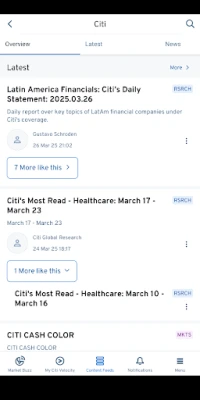 •Enhanced Search – Search by author, subject or keyword to quickly and easily find relevant Citi intelligence, categorized into research, commentary, and videos results.
