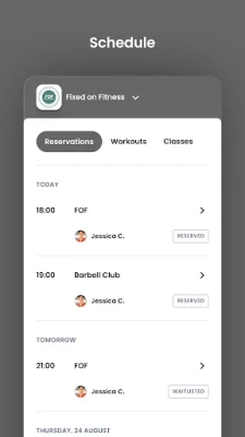 For members of Fixed on Fitness to reserve their place in a class, sign up for gym events, and general account management like updating headshots and credit card on file.