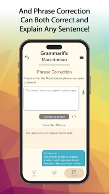 - Phrase Correction Innovation: Refine your written Macedonian with our Phrase Correction tool, offering precise, detailed corrections and explanations to hone your language skills.