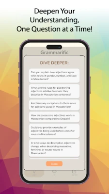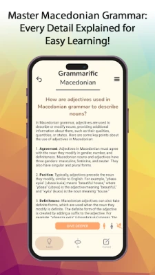 "Grammarific Macedonian" is your passport to achieving fluency and a deeper appreciation of the Macedonian language. Whether you are studying for personal enrichment, professional goals, or cultural engagement, this app is an invaluable resource, combining modern educational technology with in-depth language learning.
