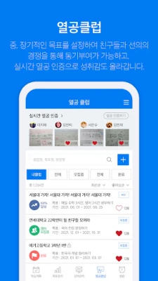 중, 장기적인 목표를 설정하고 실시간으로 열공인증을 통해 친구들과 소통이 가능하며, 선의의 경쟁&목표 달성 성취감 상승으로 동기부여가 가능합니다.