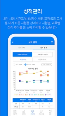 메가스터디 채점서비스와 연동되어 시험별/과목별 성적 흐름을 확인할 수 있으며,