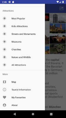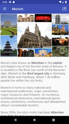 Munich City Guide, your android tourist guide for Munich. Your own travel guide to glimpse out Munich's Tourist Spots. Don't spend hours on Internet trying to organize your journey. Munich City Guide makes your trip easier and memorable by providing information required to have a successful trip.