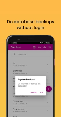 Last but not least, no login is required. We respect your privacy. You manage your backups by exporting the backup file to your cloud services or sending it by email and restoring it any time you want. The user is completely resposible for the backups.