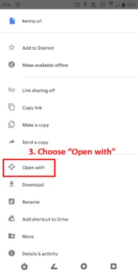 - From Google drive, choose open with, you will be redirect to the site mentioned in the URL file.