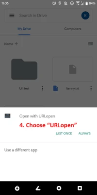 For example, when you click on a URL file in Google Drive or any file explorer, choose "URL opener", then you will automatically be redirected to that website.