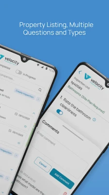 Velocity Properties is a mobile platform for inspecting your commercial property portfolio. After setting up your portfolio and creating an inspection template in the Velocity Properties web application, you can use the mobile app to conduct inspections, create capital plans, generate work orders, and communicate with your tenants. The application allows multiple templates with a variety of question types, photo/video capture, detailed reporting, and integration to industry-leading work order and proptech platforms.