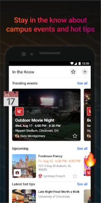 - Events & Hot Tips: Be the first to know about the trending events on campus. Whether it’s a house party, study sesh, club activity, or private event, it’s never been easier to get the word out.